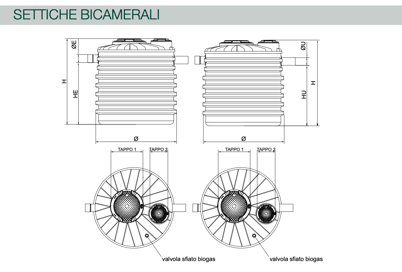 Le fosse settiche costituiscono un affidabile dispositivo per il trattamento primario dei reflui, si tratta di sistemi di depurazione passivi, molto stabili, semplici e poco costosi; sono impiegate come trattamento primario delle acque nere provenienti dai WC a servizio di scarichi domestici o assimilabili. La conformazione della vasca obbliga i liquami ad attraversare la massa liquida in essa contenuta, il rallentamento del flusso consente la separazione dei solidi sedimentabili e delle sostanze con peso specifico inferiore a quello dell’acqua, inoltre, si innesca un processo di fermentazione anaerobica, con conseguente solubilizzazione e sintesi di una parte dei solidi sospesi. In questo modo esce un effluente con una limitata concentrazione di solidi, trasformati prevalentemente in solidi disciolti e colloidali. Le vasche settiche sono previste solo in caso di sostituzione in impianti esistenti, tuttavia alcuni enti locali ne prevedono ancora la posa. Devono essere precedute da un degrassatore, così si scarica il refluo trattato in dispersione sotterranea (dove previsto da regolamenti locali), in pubblica fognatura oppure lo si può convogliare nel trattamento secondario per affinarlo e recapitarlo nel corpo ricettore idoneo.